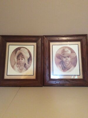 Vintage Homco Home Interior Pictures 2 Little Cowboy Prairie Girl Vel Miller Ebay