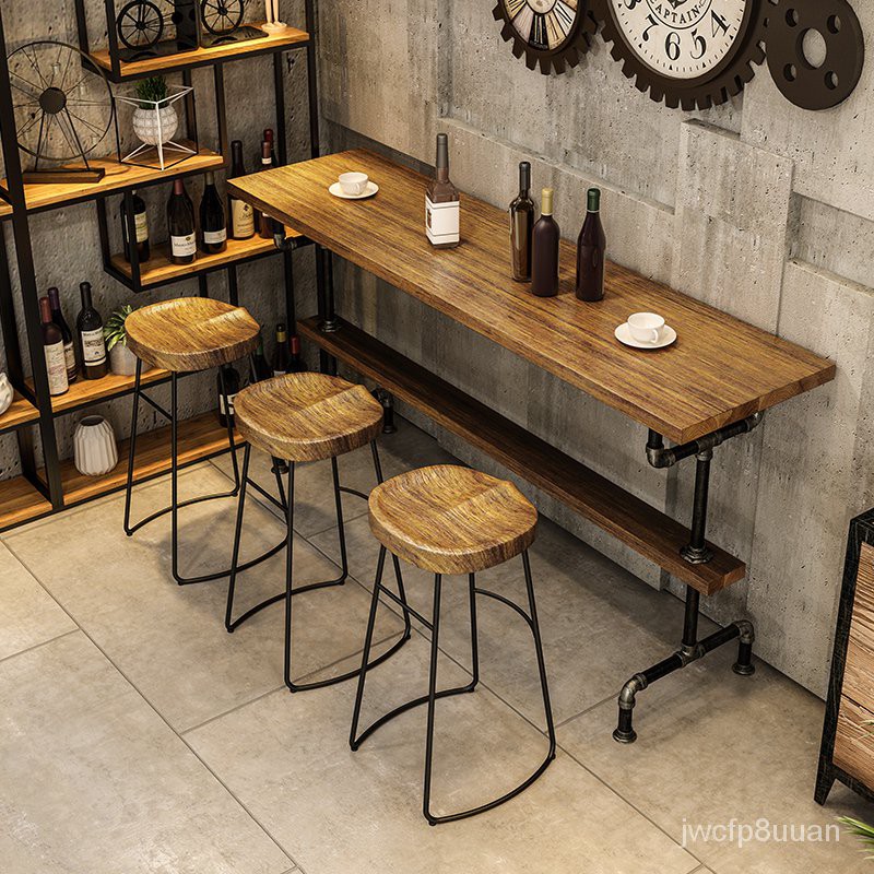 Industrial Style Solid Wood Table And Chair Combination Creative Wall Mounted High Bar Coffee Shop Long Table Retro Bar Shopee Thailand